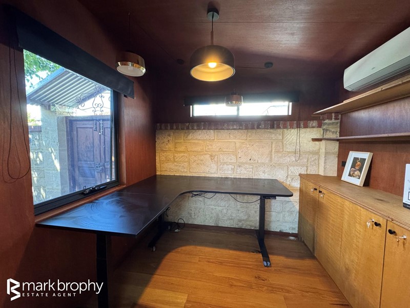 There is a separate Colourbond studio/workspace complete with air conditioning, lovely timber finishes and excellent marine ply cabinetry and benches giving a distinct maritine feel. This free standing building has its own separate access from Carnac Lane making it ideal for a work from home scenario.