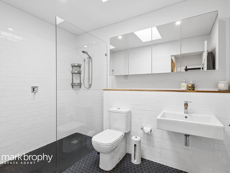 The bathroom is of generous proportions, white and bright with opening skylight and excellent fixture and fittings.