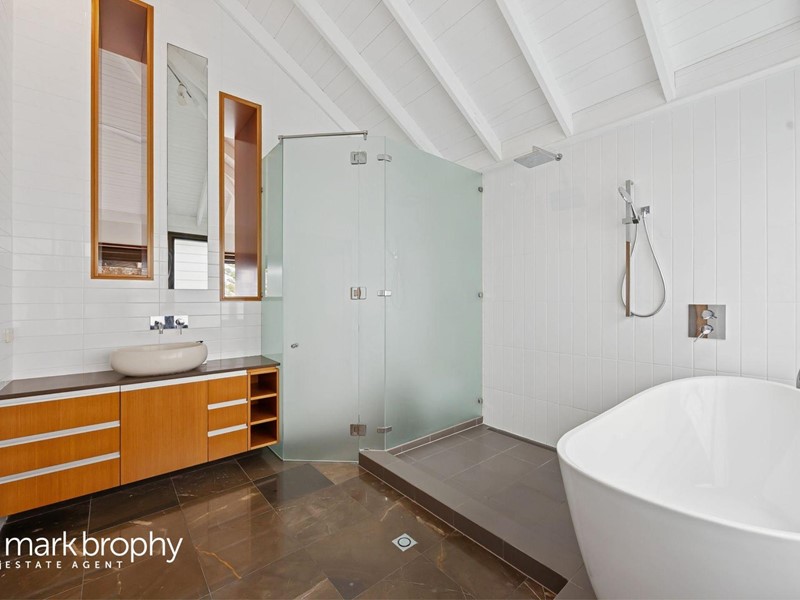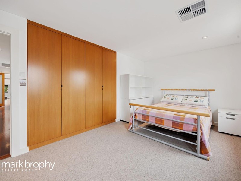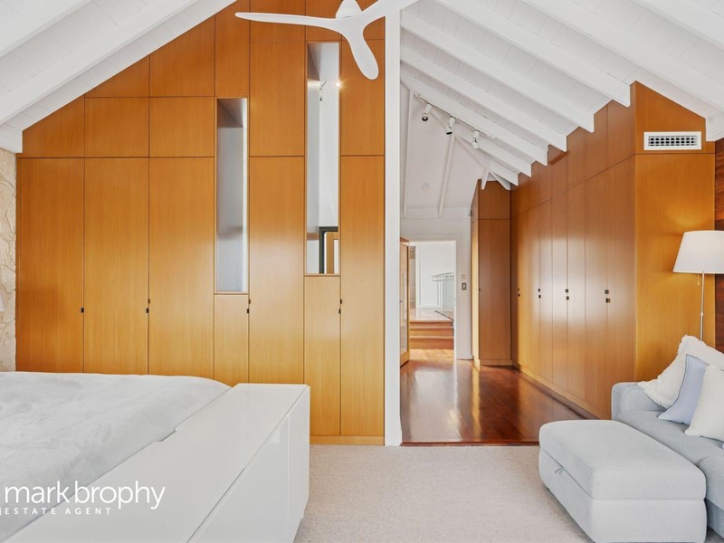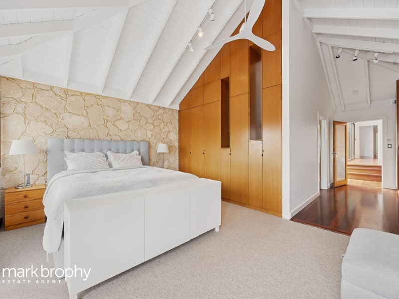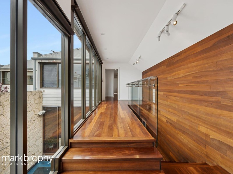 The other two bedrooms are accessed via a glass gallery with electric sun shade blinds and fabulous jarrah flooring. This separation is ideal with a second bathroom also of a very high standard and timber cabinetry work forming the robes in both additional bedrooms is outstanding - both of these bedrooms are doubles with excellent natural light.